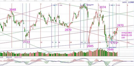 四月份馬上要進入下旬,上證指數自三月份于江恩4*1線2646點止跌后,進入了震蕩反彈階段,在此過程中,贏家大膽預測,小心求證,對于整個市場進行了持續(xù)的跟蹤和分析。三月份被套,四月份給了差價解套的機會,只有這樣才可以把握調整下來的機會。而4月份已經再次進入到臨界點附近,大盤自2646點已經上漲接近21天,而下周一即是本月的預測最關鍵窗口,指數也已接近目標點2860-2870一線,投資者要特別注意。短期的操作風險已經大于機會,切忌追漲殺跌。
