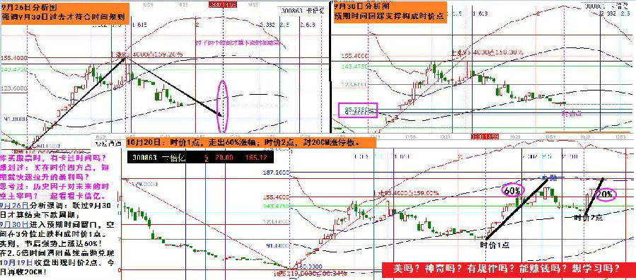 9月26日分析強調(diào):躍過9月30日才算結(jié)束下跌周期;9月30日進入預(yù)期時間窗口,空間在3分位止跌構(gòu)成時價1點。實則,節(jié)后強勢上漲達60%!在2.5倍時間遇阻藍線高拋兌現(xiàn)10月19日收盤出現(xiàn)時價2點,今日再收20CM!如此標準的時價韻律,踩住了都是真金白銀!看懂江恩時空技術(shù)的魅力了嗎?想要深入學習,聯(lián)系贏家管理!
