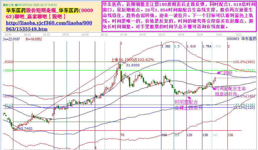 2.價格:江恩120度+生命線支撐,價格共振。阻力點180度位置。買在支撐,即120度和生命線附近為買點,應逢低關注。