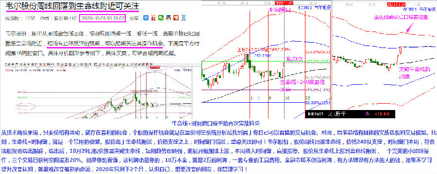 從技術(shù)角度來說,只要價格有波動,就存在套利的機會,個股的操作機會就是在量價時空系統(tǒng)分析后找到屬于你自己可以看懂的交易機會。對此,贏家總結(jié)有具體的實戰(zhàn)選股和交易模型。比如,生命線+時間窗,就是一個常用的模型。股價出于生命線附近,價格支撐之上,時間窗口臨近,重點關(guān)注即可!韋爾股份,股價周線回落生命線,價格240度支撐,時間窗口本周,符合選股規(guī)則選出跟蹤,選出后,10月29日股價放量突破生命線,短期趨勢也轉(zhuǎn)強,隨后開始加速上漲,本周進入時間窗,直接漲停。股價從生命線上漲到藍色線附近,一個完美的小波段操作,三個交易日獲利空間接近20%。如果你能看懂,這利潤也是你的,10萬本金,就是2萬的利潤,一套專業(yè)的工具費用。金融市場不創(chuàng)造利潤,有方法賺沒有方法的人的錢,如果不學(xué)習(xí)提升改變認(rèn)知,就很難改變被割的命運。