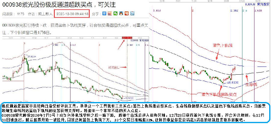 極反通道是贏家非常經(jīng)典且備受好評(píng)的工具,單單這一個(gè)工具就有三類買點(diǎn):藍(lán)色上軌線激進(jìn)型買點(diǎn)、生命線穩(wěn)健型買點(diǎn)以及藍(lán)色下軌線超跌買點(diǎn)。當(dāng)股票跌破生命線到達(dá)藍(lán)色下軌線的位置獲得支撐時(shí),將迎來一個(gè)非常不錯(cuò)的買入點(diǎn)位。