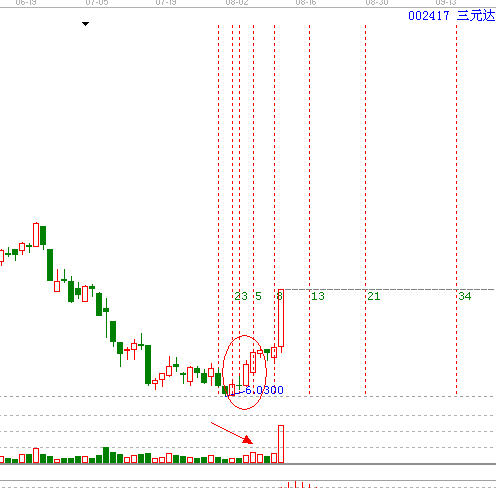 技術(shù)交流如同論經(jīng)、喝茶 之前和大家一直強調(diào), 通過當(dāng)下行情你首現(xiàn)能發(fā)現(xiàn)什么樣的趨勢是目前上升主流,這個是選股的前提標(biāo)準(zhǔn),同時也是建立的技術(shù)功底之上的模型套用; 技術(shù)是基本功,提現(xiàn)方式是以復(fù)盤選股為標(biāo)準(zhǔn),分析與操作是建立在已具備的技術(shù)功底之上; 2012年8月初,伴隨著大盤的企穩(wěn),出現(xiàn)了一批紅三兵,之后大陽,的走勢形態(tài)。 技術(shù)要領(lǐng): 1:三根小陽線,紅三兵,放量。 2:結(jié)和30,60的走勢底部背離,結(jié)合dma,結(jié)合均線形態(tài), 3:量能,紅肥綠受, 4:結(jié)合費氏時間,共振的最佳。