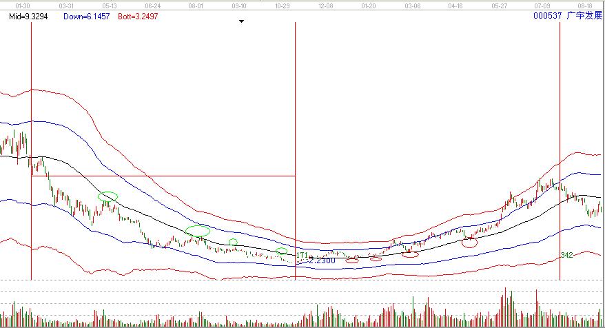 000537在2008年3月份11快附近破極反通道生命線開始下跌,在下跌的過程當(dāng)中,都是碰到極反通道就下的,直到2008.11.月份見底后上攻建發(fā)集團(tuán)的生命線,短期的橫盤后展開了一波小牛行情,在上升的過程當(dāng)中,每一次極反通道生命線的回踩都是你所介入的位置,極反通道買賣交易規(guī)則,這樣你就不會(huì)被黑馬拋棄了。直到上攻到2009.7月份11.00附近,中間有誤差【低點(diǎn)到高點(diǎn)剛好運(yùn)行了一個(gè)循環(huán)】