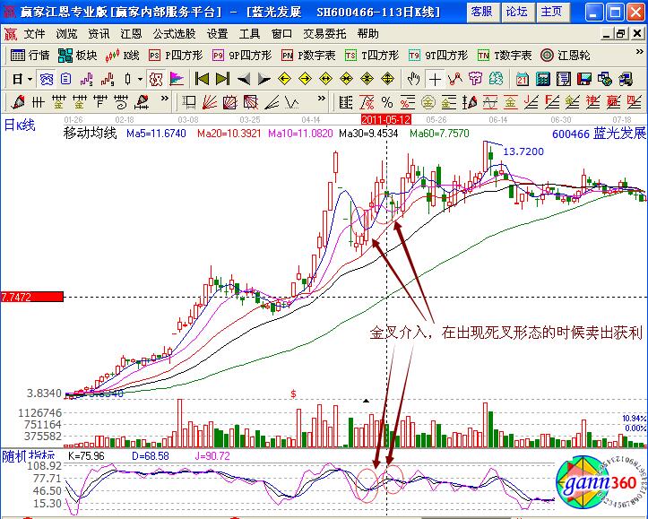 從圖中可以看出,在5月3日的時(shí)候,5日均線和10日均線形成的是金叉買入的信號,而且股價(jià)以20日均線作為上漲的支撐線,在結(jié)合kdj指標(biāo)中形成的金叉買入信號,是一個(gè)很好的短線買入信號,投資者可以在該位置介入操作。
