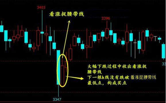 一般來說在看漲捉腰帶K線出現(xiàn)之后,后面會緊跟著一根K線,如果它的價格沒有創(chuàng)出新低的話,那么就構(gòu)成了買點。當然這里要說明的一點內(nèi)容就是,如果該形態(tài)出現(xiàn)的話,它并不意味著趨勢馬上就會進行反轉(zhuǎn)的話,所以在操作上投資者還是需要進一步的進行信號的驗證??礉q捉腰帶線和前后相鄰K線組合,往往會形成看漲涂抹形態(tài)后者是低位的孕線形態(tài)。