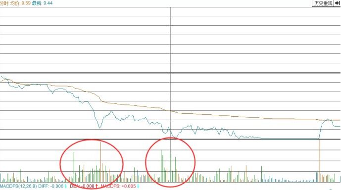 高位品字形的第三根K線形成當(dāng)天,早盤(pán)低開(kāi)后股價(jià)是一路的放量下跌,形成了典型的量?jī)r(jià)背離。如下圖所示,在下面分時(shí)圖中的每一個(gè)低點(diǎn)都出現(xiàn)了放量。反彈也是縮量淺拉一下之后就繼續(xù)下跌,顯然此時(shí)主力出貨是非常堅(jiān)決的,其實(shí)在當(dāng)日來(lái)說(shuō)也沒(méi)有特別理想的賣點(diǎn),只能在股價(jià)略有反彈的每一次的小高點(diǎn)賣出比較好了。