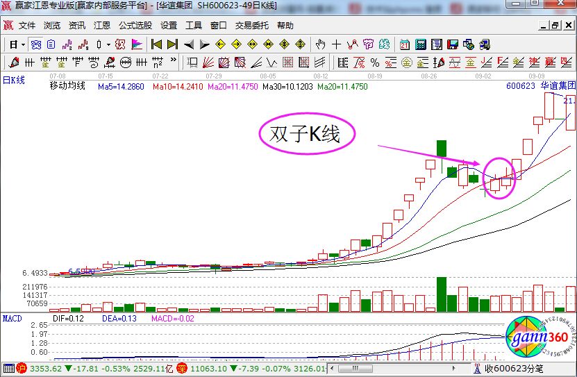 雙子K線特征就是上面的這些了,可以說它是股價回調的位置中所產生的,一般來說呈現的第二根K線開盤在第一根K線的實體中,當然也有可能是平開或者稍微低開,這時投資者就要看成交量的配合了,當然在進行選股的時候,投資者還可以結合kdj、macd等指標進行買賣點的分析。