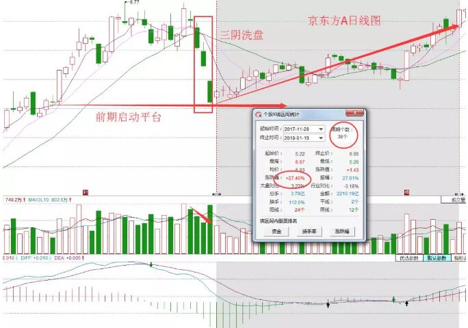 上圖是京東方A從2017年11月到今年1月份的走勢圖,從圖中可以看到:該股從創(chuàng)出6.77元的新高之后,股價隨后是處于高位震蕩狀態(tài)中,振幅也是進一步的加大,資金謹(jǐn)慎情緒逐步的加大。