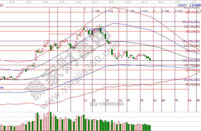 江恩理論中有一條分析規(guī)則四次遇阻力(支撐)而破,價格分析中波段百分比延伸線1倍循環(huán)180度2834點,指數(shù)按規(guī)則第四次觸碰時擊破,結合趨勢判斷,極反通道藍色下軌線是止跌重要參考線。按歷史規(guī)律,市場不同階段的重要拐點均在極反通道5條線上,盤中擊破2834點時,贏家江恩技術服務團隊在VIP學員群中談到,4月22號提示風險帶領大家減倉轉(zhuǎn)入休息,5月份二次在2840點是高風險者分批博弈,應用區(qū)間交易法均獲得利潤。市場下破2834點,延續(xù)調(diào)整是低風險者空倉或輕倉者的機會,市場走勢是有規(guī)律可循,而贏家江恩系統(tǒng)中極反通道就是一個直觀、有效的判勢工具,用規(guī)則紀律行事,買在支撐賣在壓力。本周是周線、日線時間窗口共振時間段,跟隨市場觀察是否與價格形成時價四方共振,6月10號盤中壓力是315度2844點、0度2860點,盤中支撐是180度2800、135度2786點。操作策略,指數(shù)擊破黑色生命線進入弱勢區(qū)域,整體持倉保持在3-4成,做到進可攻退可守。