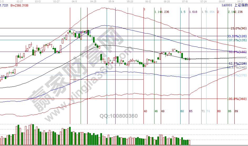 15號(hào)是月初通過贏家江恩系統(tǒng)時(shí)間周期工具測(cè)算出的7月第二個(gè)時(shí)間窗口,大盤結(jié)束為其3天的黑色生命線下運(yùn)行收復(fù)并站在線上,這是一個(gè)積極信號(hào),不完美之處有兩點(diǎn),一是收復(fù)時(shí)成交量未放大,二是短周期不協(xié)調(diào)。綜合判斷,今日早盤收復(fù)短線參考關(guān)鍵線,依據(jù)工具規(guī)則激進(jìn)者可分開始分批博弈參與,同時(shí)提供了應(yīng)對(duì)策略為向下失守60分鐘藍(lán)色下軌線被動(dòng)出局,向上觀察江恩價(jià)格四方形等空間工具測(cè)算得出的2844、2966點(diǎn),突破收復(fù)2966后才能向上拓展空間。7月15號(hào)盤中壓力是225度2944點(diǎn)、270度2961點(diǎn),盤中支撐是135度2911點(diǎn)、90度2894點(diǎn)。操作策略,指數(shù)圍繞極反通道生命線上下震蕩,2822反彈動(dòng)作還未明確結(jié)束信號(hào),時(shí)間窗口關(guān)注方向選擇,整體持倉(cāng)保持3成左右。