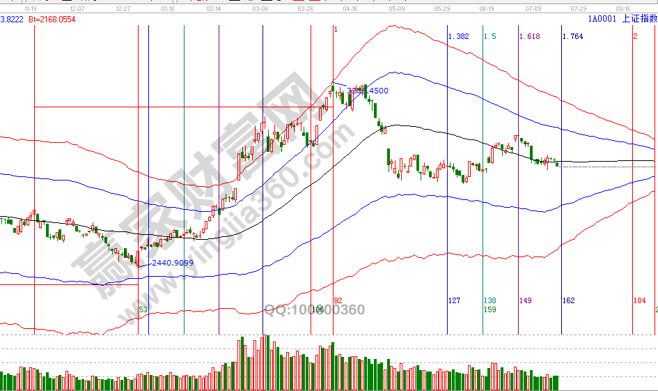 指數(shù)早盤(pán)低開(kāi)失守極反通道生命線進(jìn)入弱勢(shì)區(qū)域,并全天在線下運(yùn)行;空間工具,波段百分比延伸線、江恩價(jià)格四方形,指向明天盤(pán)中支撐是2880附近;時(shí)間方向,7月初通過(guò)江恩時(shí)間工具測(cè)算的本月第三個(gè)時(shí)間窗口是23號(hào)(第一個(gè)3號(hào)市場(chǎng)見(jiàn)階段高點(diǎn),第二個(gè)15號(hào)市場(chǎng)見(jiàn)短線拐點(diǎn)),下周科創(chuàng)板上市場(chǎng)交易,市場(chǎng)資金受擴(kuò)容壓力主板而轉(zhuǎn)低迷,按判斷生命線規(guī)則3天、量能原則,23號(hào)關(guān)注指數(shù)與生命線關(guān)系明確趨勢(shì)方向選擇。下個(gè)時(shí)間窗口是23號(hào)(黃金時(shí)間周期線0.5位置、24節(jié)氣大暑),7月19號(hào)盤(pán)中壓力是135度2911點(diǎn)、180度2928點(diǎn),盤(pán)中支撐是45度2877點(diǎn)、0度2860點(diǎn)。操作策略,指數(shù)失守極反通道生命線,失守2911點(diǎn)按計(jì)劃獲利兌現(xiàn)部分倉(cāng)位,觀察2880支撐有效性決定是否做倉(cāng)位回補(bǔ),整體持倉(cāng)保持3成左右。