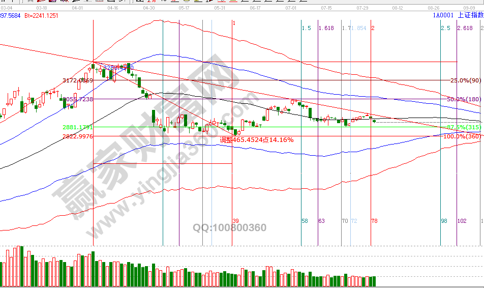 2966是近期一直強(qiáng)調(diào)的反彈重要阻力位,30號(hào)上攻到2965.6(精準(zhǔn)無(wú)誤差)后如期受阻回落,再次彰顯江恩對(duì)價(jià)格點(diǎn)位的精準(zhǔn)計(jì)算。按照規(guī)則壓力位下逢高兌現(xiàn)不開(kāi)新倉(cāng),等待8月1日時(shí)間窗口。1號(hào)時(shí)間窗,指數(shù)失收生命線(xiàn),趨勢(shì)再度轉(zhuǎn)弱。8月2號(hào)盤(pán)中壓力是135度2911點(diǎn)、180度2928點(diǎn),盤(pán)中支撐是90度2894點(diǎn)、45度2877點(diǎn)。操作策略,指數(shù)失守日線(xiàn)生命線(xiàn),失守60分鐘生命線(xiàn),穩(wěn)健者繼續(xù)休息,等待新的交易信號(hào)出現(xiàn)。整體倉(cāng)位控制在3成內(nèi)。