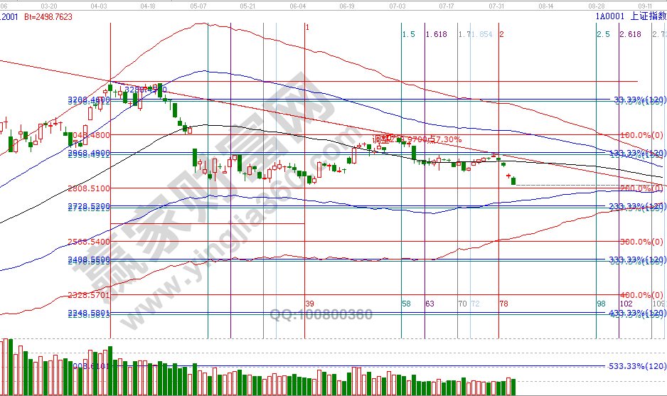 7月30號(hào)波段百分比延伸線零度位2966點(diǎn)受阻,8月1號(hào)時(shí)間窗口跌破極反通道生命線趨勢(shì)轉(zhuǎn)弱,重要的這些關(guān)鍵位都是提前給出。下跌已確認(rèn)開(kāi)始,本輪調(diào)整的目標(biāo)位在7月中旬內(nèi)部VIP學(xué)員培訓(xùn)課上已提出,市場(chǎng)正在按著當(dāng)時(shí)所講的路徑運(yùn)行,穩(wěn)健投資者需要耐心等待月線級(jí)別信號(hào),激進(jìn)者可以參考周線生命線信號(hào),5號(hào)下午在學(xué)員區(qū)從實(shí)戰(zhàn)角度再次給學(xué)員講解極反通道周期共振信號(hào),這是調(diào)整期開(kāi)倉(cāng)交易信號(hào)之一,同時(shí)主回調(diào)期板塊都在不斷進(jìn)行解讀。預(yù)期7號(hào)確認(rèn)此信號(hào),8號(hào)是24節(jié)氣立秋,空間上波段百分比延伸線120度2791、江恩價(jià)格四方形2800為支撐,綜合結(jié)論是7號(hào)確認(rèn)周期共振信號(hào)(學(xué)員區(qū)盤(pán)中會(huì)通知),激進(jìn)者可以開(kāi)倉(cāng)短線博弈。最后講一點(diǎn),3季度市場(chǎng)會(huì)給出一個(gè)極重要底,關(guān)于時(shí)間與位置學(xué)員關(guān)注學(xué)員區(qū)。8月6號(hào)盤(pán)中壓力是315度2844點(diǎn),盤(pán)中支撐是180度2800點(diǎn)、135度2786點(diǎn),8月時(shí)間窗口9號(hào)、16號(hào)、24號(hào)。操作策略,指數(shù)極反通道生命線進(jìn)入弱勢(shì)通道,按失守一線看低一線規(guī)則藍(lán)色下軌線是目標(biāo)位,短線跟蹤好15、30周期共振信號(hào),激進(jìn)者控制在3成以?xún)?nèi)交易。