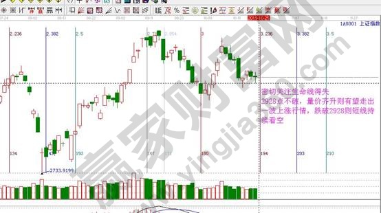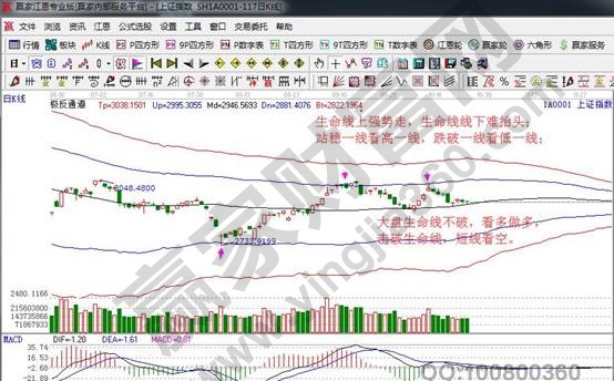 ★依據(jù)贏家江恩理論系統(tǒng)極反通道提示:指數(shù)日K線在黑色生命線2928點(diǎn)上運(yùn)行,按規(guī)則生命線上看多做多。