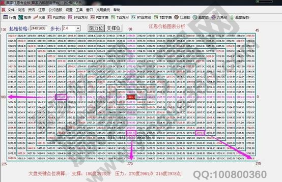 ★依據(jù)贏家江恩理論系統(tǒng)江恩價(jià)格四方形提示:以2440點(diǎn)為起點(diǎn)做江恩價(jià)格圖表,24號(hào)盤中壓力是270度2961點(diǎn)、315度2978點(diǎn),盤中支撐180度2928點(diǎn),支撐上運(yùn)行看多。