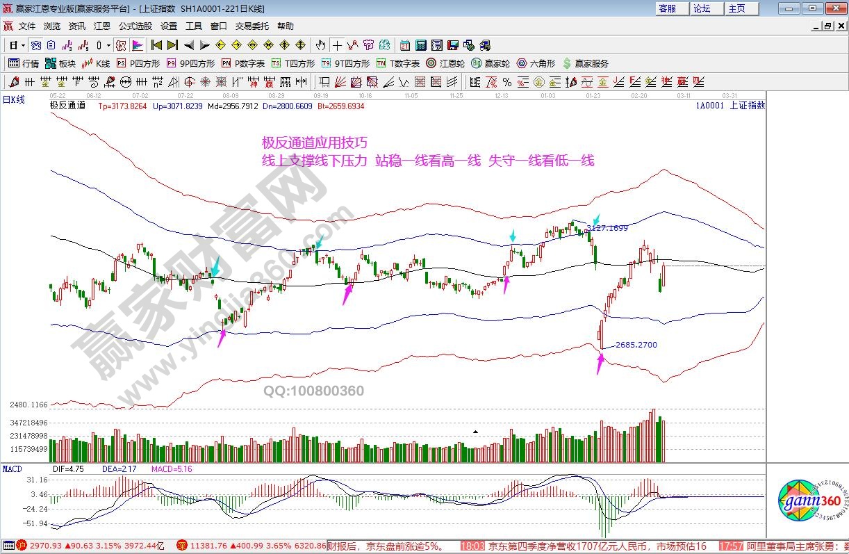 ★依據贏家江恩系統自由時間價格計算器(江恩箱)分析:指數收盤正好在上升3*2線2970一點不差,按規(guī)則短期看多?!?/p>
