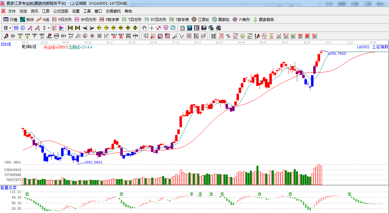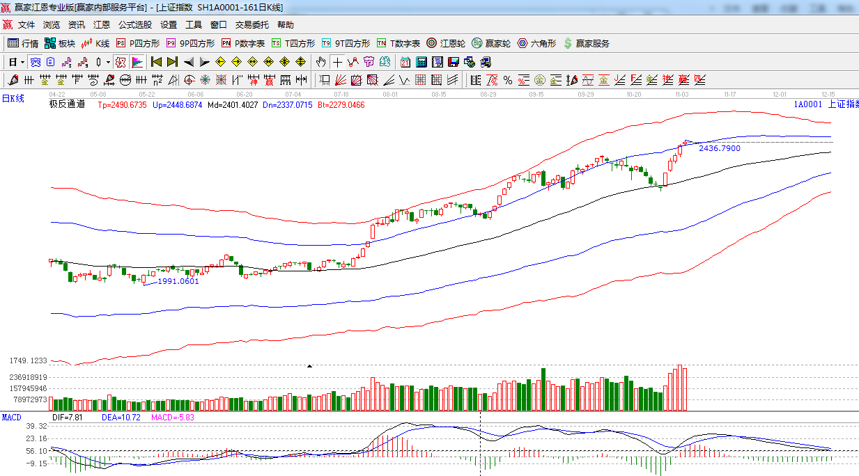 ★依據(jù)贏家江恩系統(tǒng)極反通道提示:藍色外軌線支撐是2410點附近,留意后期量能,如不能支持,此位置將仍有反復。