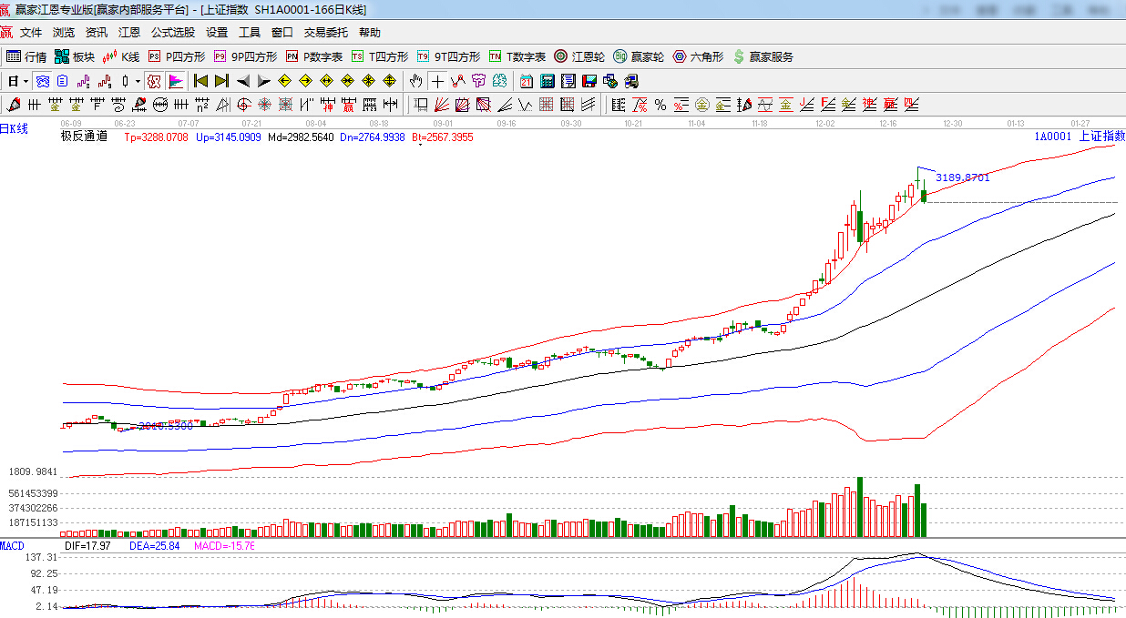 ★依據(jù)贏家江恩系統(tǒng)極反通道提示:今日滬指沖高回落破位紅色外軌線,依據(jù)規(guī)則跌破一線看低一線,下方目標(biāo)位是藍(lán)色外軌線,短期謹(jǐn)慎為主。