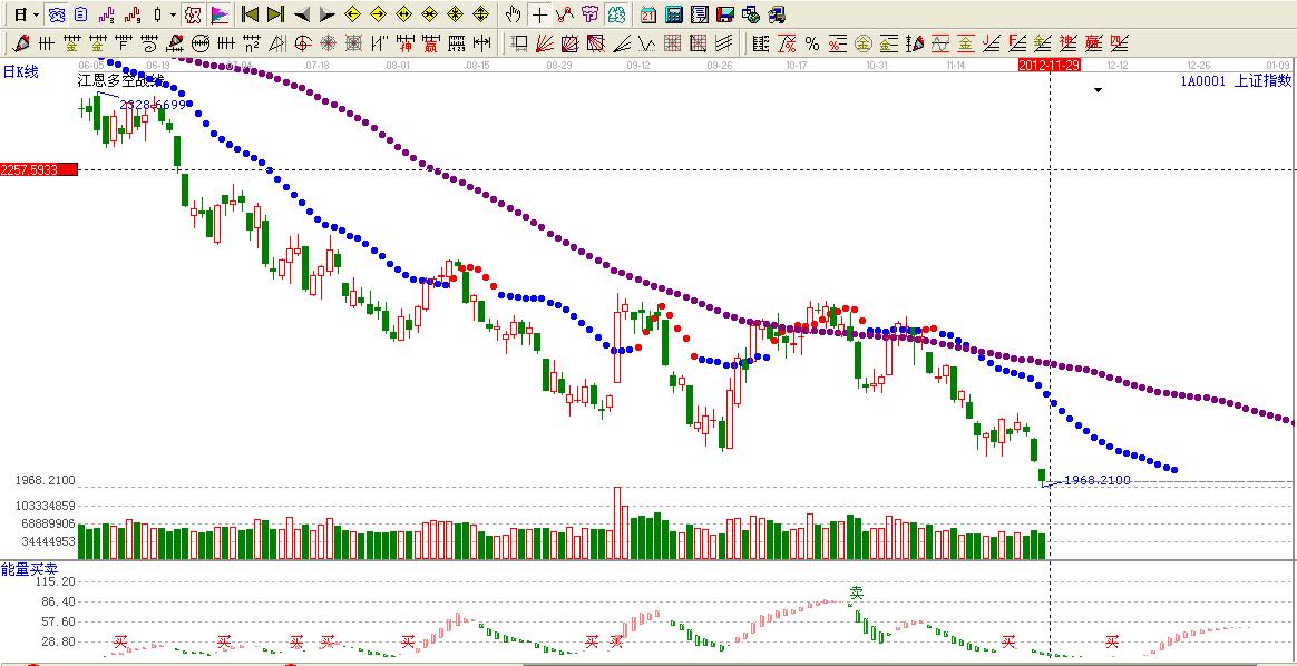 ☆依據(jù)贏家江恩多空戰(zhàn)線提示:大盤長期短期趨勢(shì)均處于看空區(qū)域。