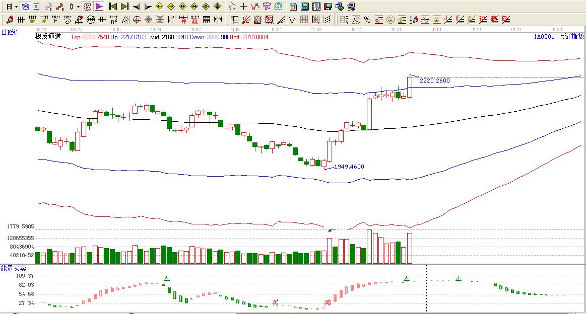 綜上所述:大盤(pán)在神奇時(shí)間拉出一根長(zhǎng)陽(yáng),突破極反通道上軌位置,上方壓力在0度位置2250附近。極反通道上軌支撐2184點(diǎn)。