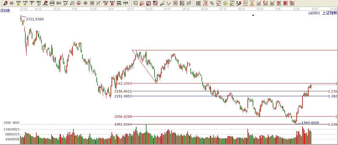 ☆依據(jù)贏家江恩黃金價(jià)格延伸線提示:大盤上方1位置壓力2245看空,下方1.236位置支撐2186附近。