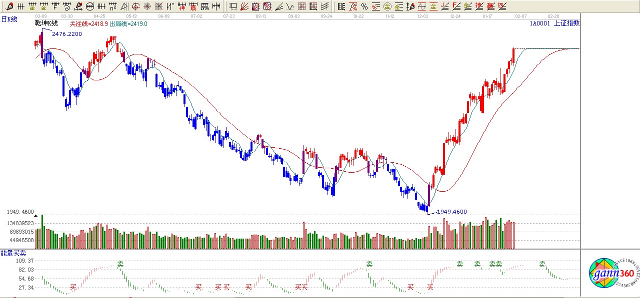 ★依據(jù)贏家江恩系統(tǒng)能量買賣提示:能量買賣多空臨界點,處于紅色區(qū)間看多。