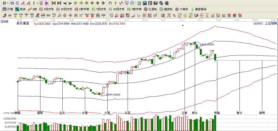 ★依據(jù)贏家24節(jié)氣轉(zhuǎn)折日提示:明天是24節(jié)氣驚蟄大盤在雨水的位置見(jiàn)頂后下跌,明天是其重要的時(shí)間窗口。下一個(gè)24節(jié)氣在2013-03-20日春分時(shí)間窗口
