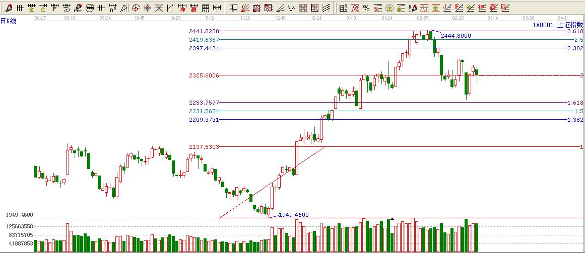 ★依據(jù)贏黃金價格延伸線提示:大盤處于2倍延伸位置2325上方,按照贏家工具規(guī)則2倍位置不破看高一線至2.382位置2397點附近。