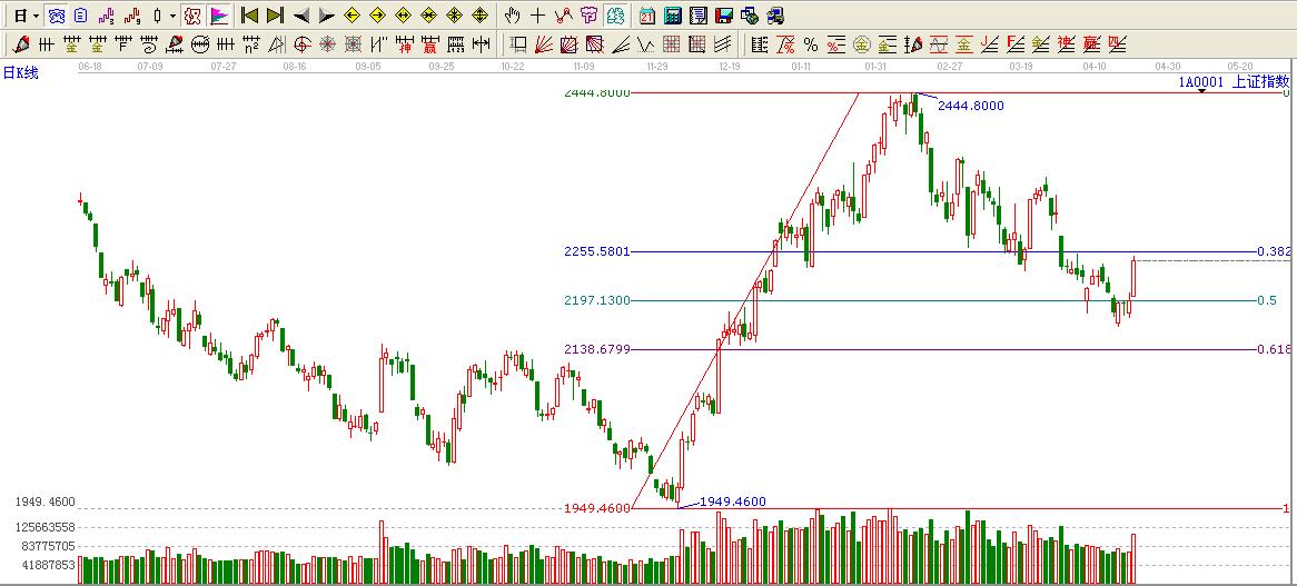☆依據(jù)黃金價格回調(diào)支撐位提示:上周4 強調(diào)0.5位置不破看高一線至0.382位置2255.58點。目前運行在其下方附近,短期這里構成壓力區(qū)域。不過謹慎。