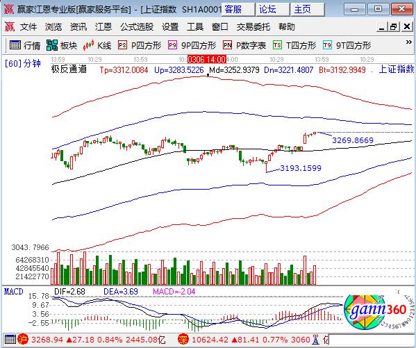 咨詢:13333833889大盤周四高開高走跳空上漲0.84%,幾大指數(shù)全線上漲,除創(chuàng)業(yè)板外滬深指數(shù)均創(chuàng)今年以來新高。板塊方面,券商、保險領(lǐng)漲權(quán)重,家電、釀酒板塊逆勢下跌;題材方面,次新一權(quán)獨秀,無人駕駛、一帶一路漲幅靠后,個股普漲成交量放大。技術(shù)方面,一根中陽上攻至江恩百分比135度3268點,指數(shù)運行空間昨日已提到,下方江恩百分比90度及生命線是支撐,上方135度和外軌線是壓力位,滬指到達(dá)阻力后將會轉(zhuǎn)為震蕩,輪換為個股行情,3251、3240為日內(nèi)支撐,3283、3290為日內(nèi)阻力,僅供參考,不構(gòu)成任何投資建議。