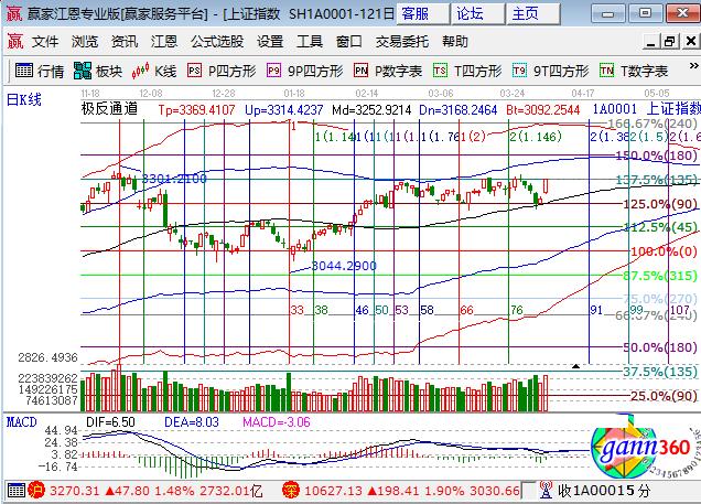 大盤周三高開高走放量大漲1.48%,深市幾大指數(shù)漲幅達2%左右,今天的大漲主要受假期雄安新區(qū)消息刺激,讓大盤騰空而起。板塊方面,雄安新區(qū)概念刺激京津冀本地股及基建全線大漲,鋰電和人工智能盤中也有表現(xiàn),保險、銀行、家電漲幅墊后;題材方面,一帶一路、次新、高送轉(zhuǎn)等繼續(xù)拖后腿,個股普漲成交量放大。技術方面,日線極反通道生命線位置止跌上攻,贏家江恩工具實戰(zhàn)性再次被市場認同,短周期跳空進入生命線以上,同時日線收盤在江恩百分比135度位置,滬指沖高后至外軌線附近后將展開震蕩,個股開始分化,整體倉位保持在7成,除雄安概念外的個股后續(xù)會跟隨上漲,3250、3240為日內(nèi)支撐,3290、3305為日內(nèi)阻力,僅供參考,不構(gòu)成任何投資建議。