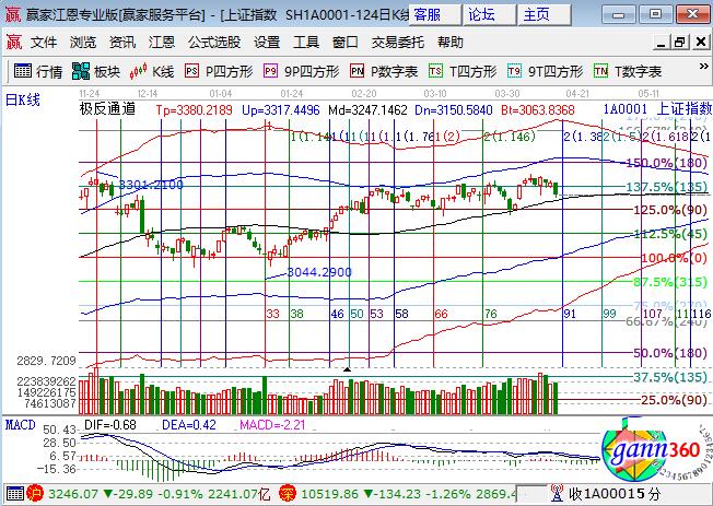 咨詢:13333833889大盤上周五低開低走中陰殺跌0.91%,深成指和中小創(chuàng)大跌1%以上,創(chuàng)業(yè)板創(chuàng)近期新低。板塊方面,兩市僅船舶板塊收紅,煤炭有色、石油、銀行相對抗跌;盤面無熱點,黃金、高送轉(zhuǎn)盤中有表現(xiàn)但力度有限,粵港澳、雄安新區(qū)、一帶一路概念領(lǐng)跌,個股下跌居多。技術(shù)方面,日線收盤跌破贏家江恩百分比135度位置,下方極反通道生命線、江恩百分比90度為下方支撐帶,點位分別是3233、3210點,短周期均運行在生命線以下弱勢通道,操作頻率降低,注意觀察支撐帶支撐有效性,波段4成倉位,短線3成倉;3223、3210為日內(nèi)支撐,3255、3263為日內(nèi)阻力,僅供參考,不構(gòu)成任何投資建議。