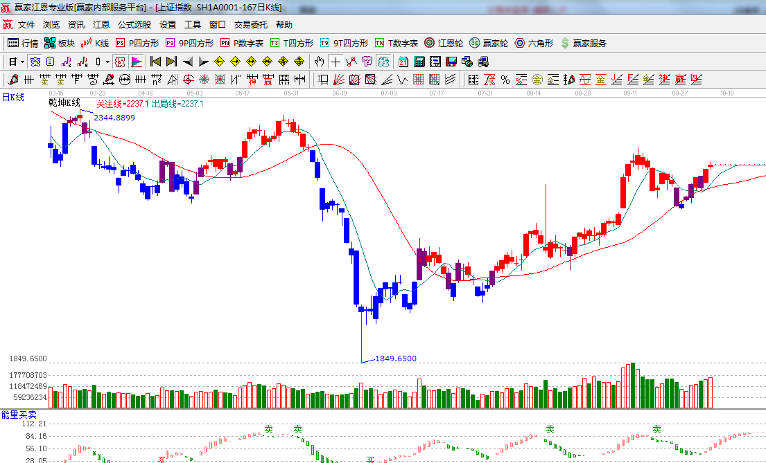 ★依據贏家江恩系統(tǒng)能量買賣提示:紅色柱子逐漸加長,多方占優(yōu);