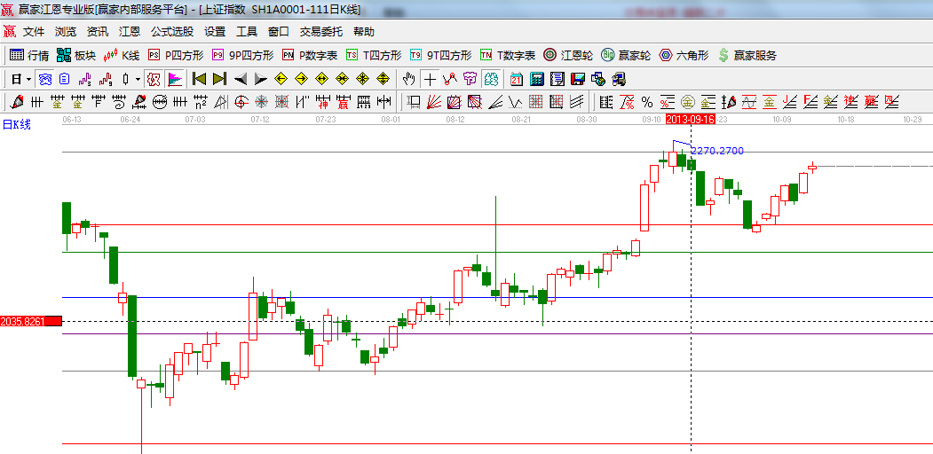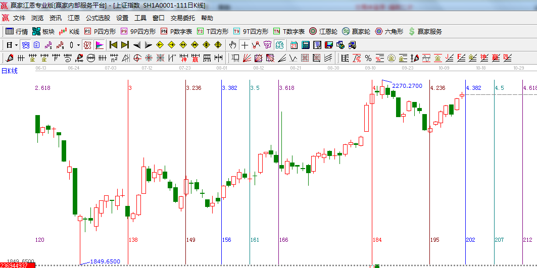 ☆依據贏家江恩系統(tǒng)波段百分比延伸提示:240-270度位置是2232-2255;