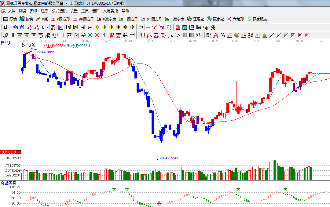 ★依據(jù)贏家江恩系統(tǒng)能量買賣提示:紅色柱子逐漸加長,多方占優(yōu);