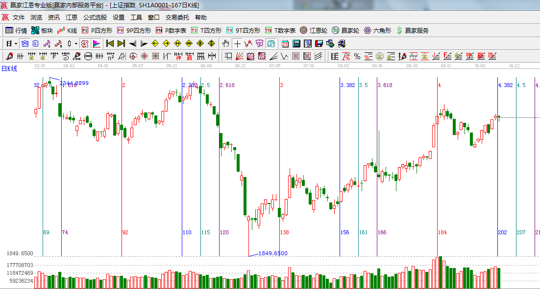 ☆依據(jù)贏家江恩系統(tǒng)波段百分比延伸提示:240度位置是2255點附近;