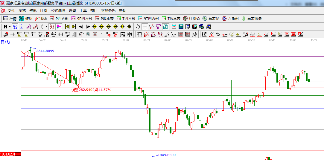 咨詢:13333833889指數(shù)延續(xù)下跌趨勢以小陰線報收,綜合當前各方面因素可得出預判市場的調(diào)整將是以緩跌開展,短周期15分鐘再下探將會形成背離,仍以盤中反抽方式修復指標,長周期周線判斷生命線位置是2150附近,這區(qū)域也是日線生命線的位置,政策方面十八屆三中全會將于下個月上旬召開,一些政策支持將帶動板塊的輪翻上攻熱點不會缺失;時間方面注意下周三時間窗口與極反通道的關(guān)系;