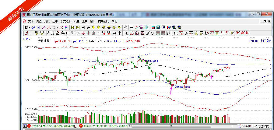 【贏家江恩點評:極反通道工具可幫助用戶解決大盤或個股趨勢判斷、價格買賣點,在日內(nèi)差價高拋低吸方面更能提示其優(yōu)勢?!?/strong>