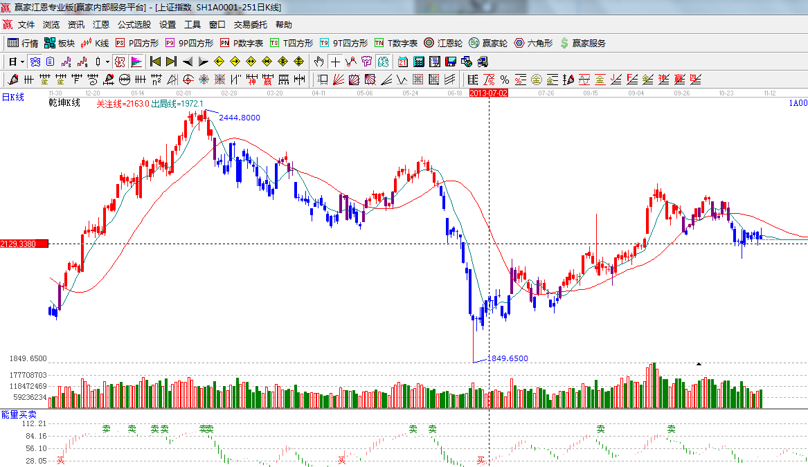 ☆依據(jù)贏家江恩系統(tǒng)能量買賣提示:多空轉(zhuǎn)換節(jié)點(diǎn)位置,等待信號(hào)的確認(rèn);