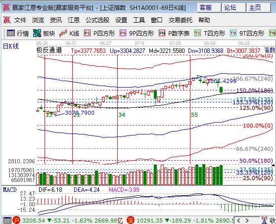咨詢:13333833889上周五大盤低開低走大跌1.63%,資源和權重集體砸盤使滬指創(chuàng)年內最大單日跌幅,除創(chuàng)業(yè)板小跌外其它幾大指數(shù)均大跌。板塊方面,僅船舶紅收,周期股有色、鋼鐵、煤炭,券商、化工等板塊領跌,石油、保險跌幅小于大盤但也是大跌;題材方面,電解鋁和稀土引領漲價資源暴跌,雄安和小部分軍工股強勢,成交量較前日放大。技術方面,日線如早盤分析所判斷跌至極反通道生命線位置,短周期分別進入超弱通道、弱勢通道內,以當前盤面走勢破生命線順勢下探的概率較大,江恩百分比180度3222成為盤中反抽阻力,下方135度、120度所構成的支撐帶預計是本輪調整結束區(qū),點位區(qū)間是3174-3158點,操作上繼續(xù)等待支撐帶區(qū)間止跌后參與,倉位控制在4成以內,3180、3174為日內支撐,3222、3230為日內壓力。僅供參考,不構成任何投資建議。