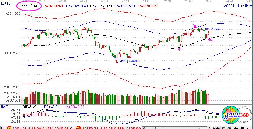 【贏家江恩點評:極反通道工具可幫助用戶解決大盤或個股趨勢判斷、價格買賣點,在日內(nèi)差價高拋低吸方面更能提示其優(yōu)勢。】