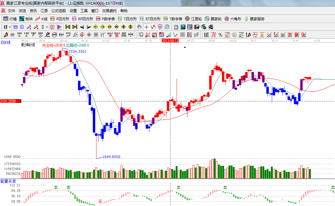 ★依據(jù)贏家江恩系統(tǒng)能量買賣提示:多方量能紅色柱子延伸,繼續(xù)看;