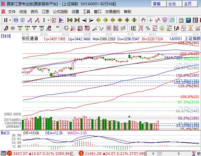 咨詢(xún):13333833889大盤(pán)周四高開(kāi)震蕩上漲放量收盤(pán)站上3400點(diǎn)關(guān)口,滬指創(chuàng)反彈以來(lái)新高,深市幾大指數(shù)走勢(shì)相對(duì)較弱,僅創(chuàng)業(yè)板沒(méi)有創(chuàng)近期新高。板塊方面,釀酒、保險(xiǎn)領(lǐng)漲,鋼鐵、有色、煤炭等藍(lán)籌股漲幅靠前,銀行板塊領(lǐng)跌;題材方面,高鐵概念領(lǐng)漲題材,5G、芯片、特斯拉、次新和上海自由港局部表現(xiàn),開(kāi)板新股、環(huán)保、醫(yī)療和房屋租賃等領(lǐng)跌,個(gè)股漲多跌少,成交量配合上漲放量。技術(shù)方面,短周期15、30分鐘K線推進(jìn)到極反通道外軌線處受阻回落,60、120分鐘及日線外軌線共振區(qū)在3440區(qū)域,待15、30短期修復(fù)后還將帶動(dòng)大周期上行,昨日早盤(pán)中已提到日線領(lǐng)度成為上行中的阻力,距離外軌線共振區(qū)空間也有限,大概率24號(hào)早盤(pán)分析提到的加倉(cāng)籌碼,會(huì)在11月7號(hào)外軌線附近選擇高拋,此觀點(diǎn)是對(duì)市場(chǎng)預(yù)判,執(zhí)行策略會(huì)跟隨市場(chǎng)走勢(shì)做調(diào)整,波段倉(cāng)5成,短線倉(cāng)3成,3388、3397為日內(nèi)支撐,3420、3427為日內(nèi)壓力。僅供參考,不構(gòu)成任何投資建議。