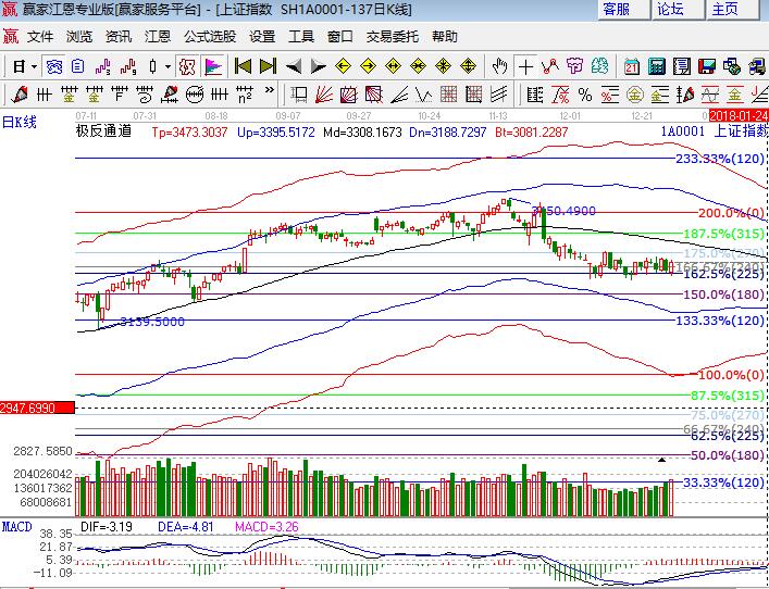 咨詢:13333833889滬指周四低開高走上漲0.63%,主要是大藍籌拉抬,深市走勢較弱,創(chuàng)業(yè)板微跌。板塊方面,釀酒、有色、鋼鐵、煤炭、家電等板塊領(lǐng)漲,大金融、石油跑贏大盤;題材方面,部分次新、新能源、高送轉(zhuǎn)概念盤中表現(xiàn),天然氣、維生素、大數(shù)據(jù)、芯片領(lǐng)跌,個股上漲居多成交量持續(xù)放大。技術(shù)方面,大盤日線圍繞江恩百分比225度3272點震蕩后拉起,收盤站在240度3288點上方,本月基本維護在225度與270度構(gòu)造的空間上下震蕩,周線的時間窗銜接17年末與18年初,23號用戶群課談到本周是相對安全的,對于1月份的操作是相對謹慎的,回顧11月21號的點評,對于以年為單位的持股是可以忽略這里的中期調(diào)整,而對于趨勢交易者已在11月出局,按時間周期計算18年1、2月份是趨勢交易者分倉建中長線標的時機,對于短期漲、橫、跌三類區(qū)間已重復多次,我們應對不同的策略來應對即可,上證50繼續(xù)觀察日生命線得失。操作策略上波段4成倉持股不動,3288、3272為日內(nèi)支撐,3308、3321為日內(nèi)壓力。僅供參考,不構(gòu)成任何投資建議。