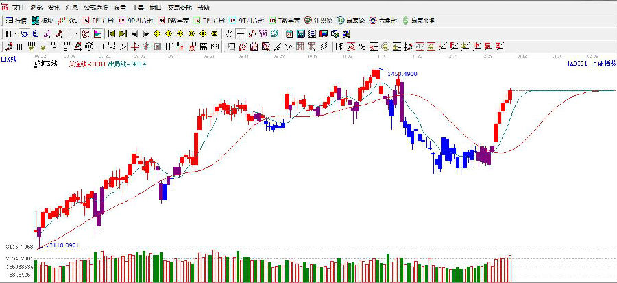☆依據(jù)贏家江恩理論系統(tǒng)極反通道提示:滬指超預(yù)期上漲,突破了60分藍(lán)色上軌線,并收復(fù)3400點(diǎn),3400點(diǎn)之上股價(jià)有望繼續(xù)保持強(qiáng)勢(shì)。依據(jù)規(guī)則,日線生命線之上,趨勢(shì)多頭。