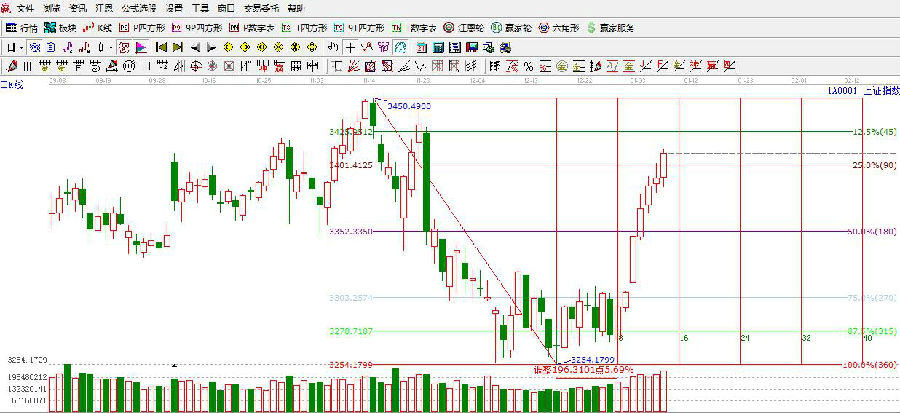 ★依據(jù)贏家江恩理論系統(tǒng)江恩波段百分比提示:滬指超預(yù)期上漲,突破了百分比90度強(qiáng)阻力3401點(diǎn)。3401點(diǎn)轉(zhuǎn)變?yōu)橹?,下?80度依舊是3352點(diǎn)附近,上方目標(biāo)阻力在百分比45度3425點(diǎn)附近。
