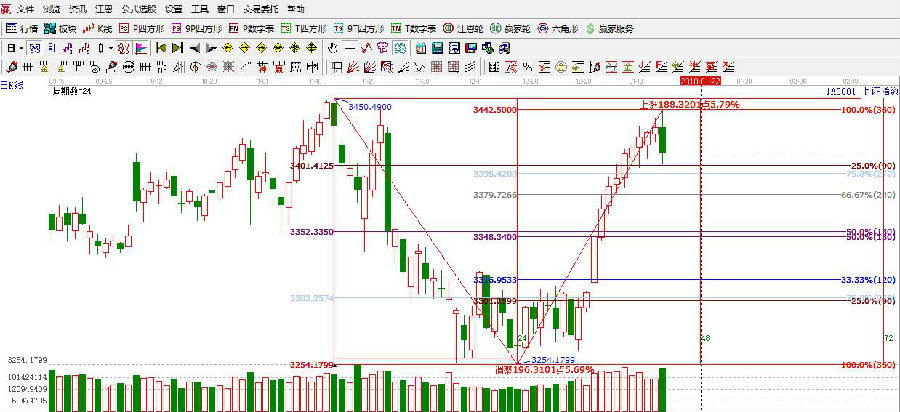 江恩看盤綜述:依據(jù)贏家江恩技術(shù)工具分析得出:大盤在10日窗口后,量縮價(jià)漲。今日指數(shù)如期迎來調(diào)整,最低探至3402點(diǎn)后回升。經(jīng)過11連陽的上攻,這里的回調(diào),空間上不會(huì)太多,接下來繼續(xù)關(guān)注百分比支撐3400點(diǎn),3380點(diǎn)附近。也就是說這里回調(diào)之后,將是一個(gè)比較好的低吸的機(jī)會(huì)。整體上,中線趨勢看好依舊,短線保持謹(jǐn)慎。本周傾向于低吸,而不宜去追漲。耐心等待指數(shù)回調(diào),可在回調(diào)中關(guān)注年報(bào)業(yè)績良好的標(biāo)的股的低吸機(jī)會(huì)。