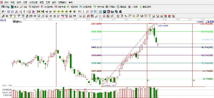 江恩看盤綜述:依據(jù)贏家江恩技術(shù)工具分析得出:周三,滬指跳空低開破位60分生命線,最低回探至前期頭部3450附近,尾盤有所回升。但并未收復(fù)60分生命線3490點(diǎn),60分生命線之下,仍有繼續(xù)整理以及回調(diào)的可能。下方支撐225度線3462點(diǎn),180度3420點(diǎn)附近。依據(jù)規(guī)則,如能重新有效收復(fù)短周期生命線,市場(chǎng)有望逐步恢復(fù)反彈。建議保持謹(jǐn)慎的同時(shí),觀察低吸機(jī)會(huì),主線依然是是基本面良好的滯漲藍(lán)籌。