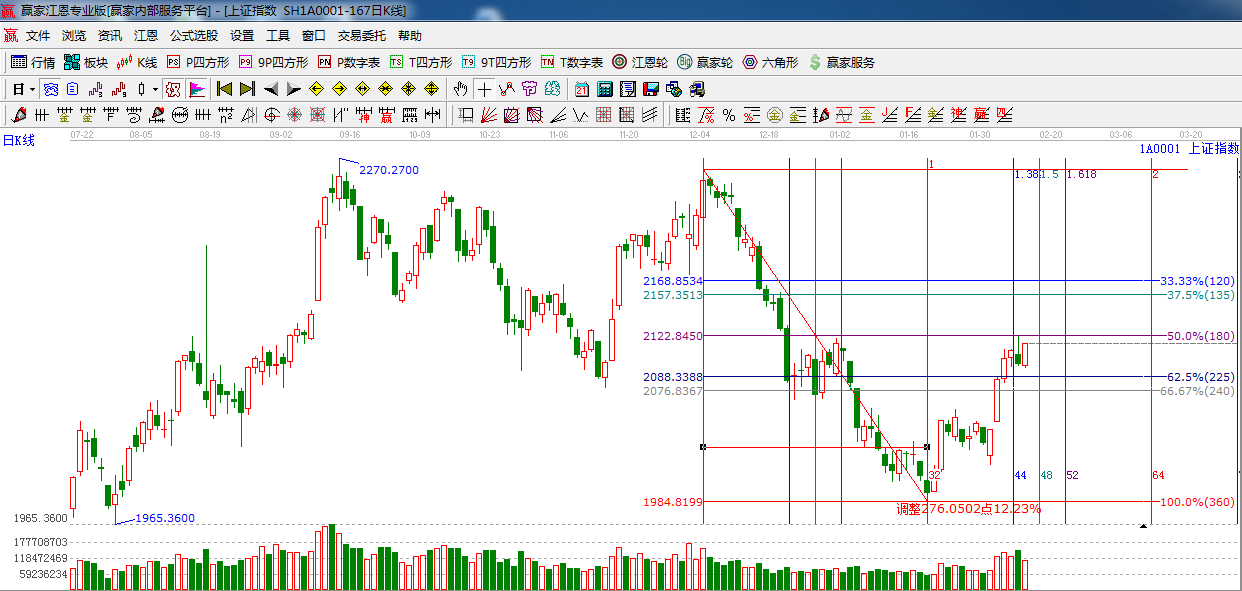 ☆依據(jù)贏家江恩系統(tǒng)黃金時間周期線提示:下周江恩時間窗口是2月18日,2月24日(黃金時間1.5,1.618的時間窗口)