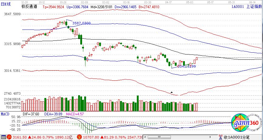 【贏家江恩點評:極反通道工具可幫助用戶解決大盤或個股趨勢判斷、價格買賣點,在日內(nèi)差價高拋低吸方面更能提示其優(yōu)勢。】